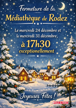 Exceptionnellement, la Médiathèque et la Ludothèque de Rodez fermeront leurs portes à 17h30 les mercredis 24 et 31 décembre 2025.
